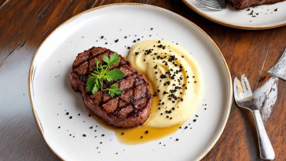 Antricot de vită Uruguay cu piure de cartofi și trufe, în sos de piper tostat