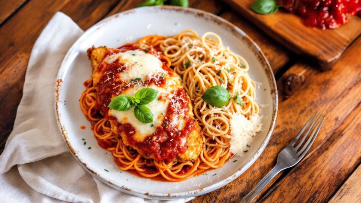 Piept de pui alla parmigiana cu spaghetti al pommodoro