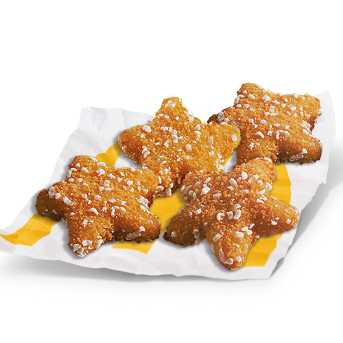 Meniul contine un sandvis Hamburger 100 g, o portie mica de cartofi 80 g sau felii de mere 80 g si, la alegere, o bautura racoritoare 250 ml: Suc mere din concentrat, Suc Portocale din concentrat, Lipton, Coca Cola, Fanta, Sprite) sau Apa Plata/Carbogazoasa 500 ml, si o jucarie