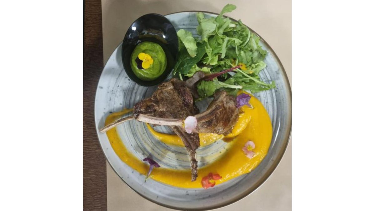Cotlet berbecuț, piure de legume, unt, sos meson, mix de salată 700g
