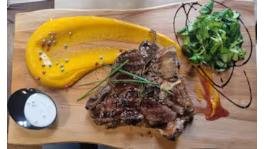 T-bone, cartofi aromați, sos meson 100g