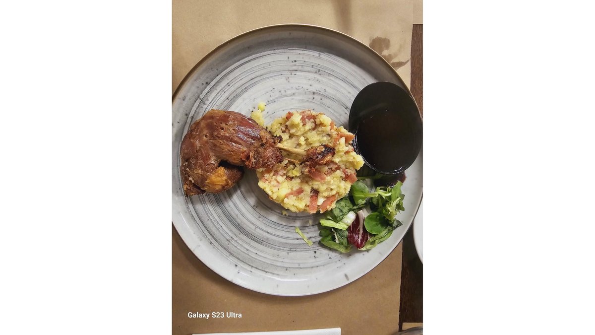 Pulpă de rață sous vide cu piure de cartofi și bacon