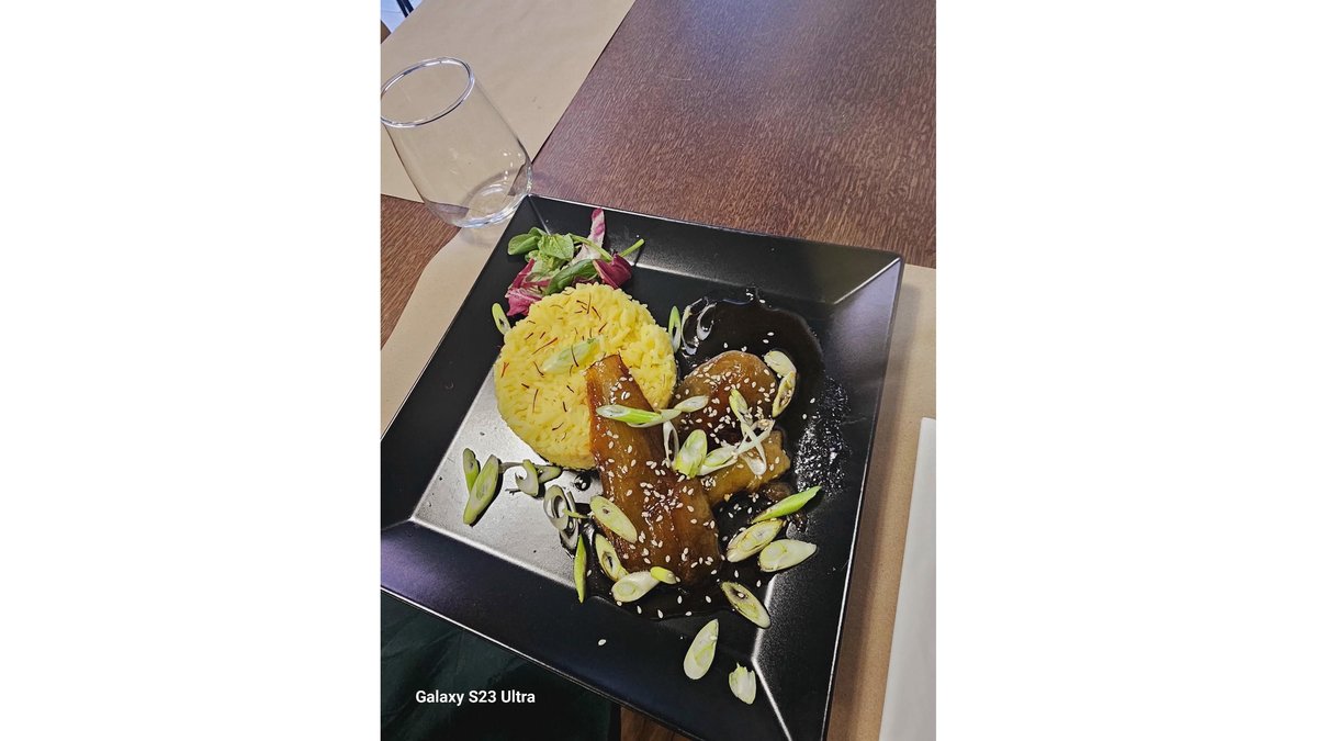 Vânătă cu sos de soia și orez cu șofran