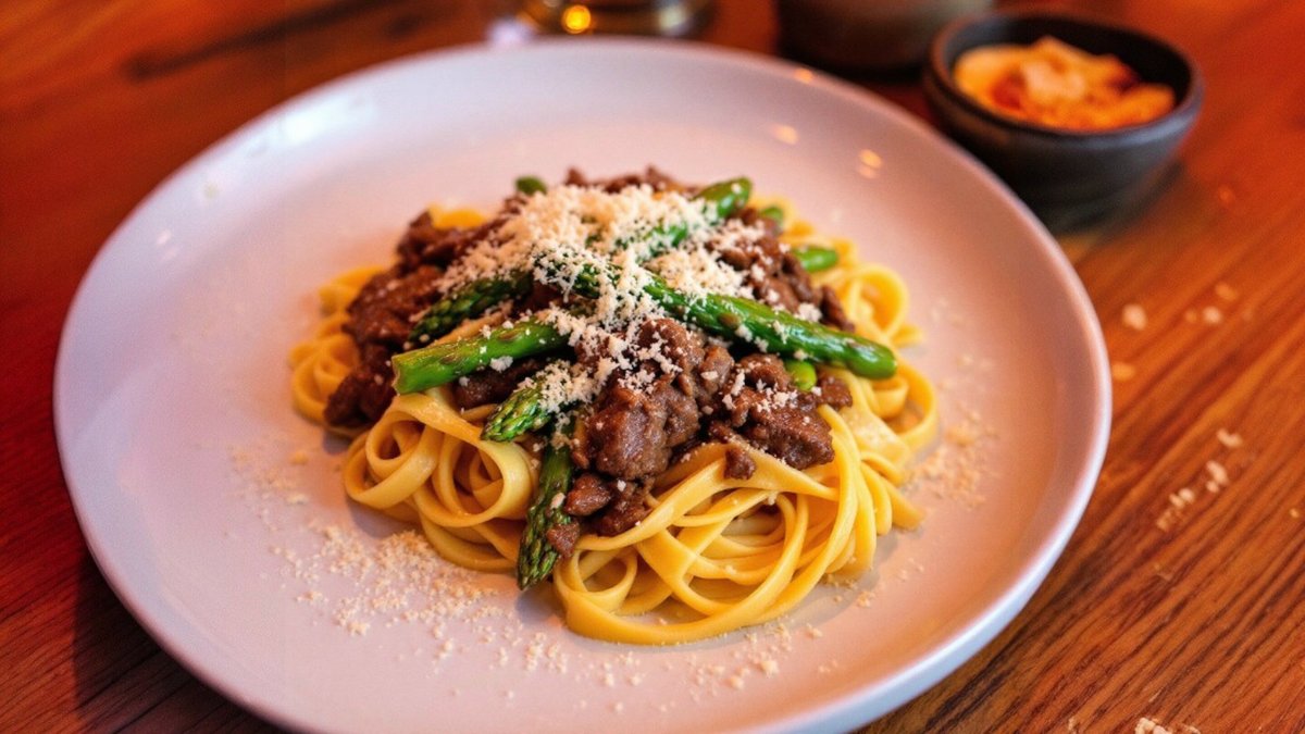 Tagliatele cu vită și sparanghel