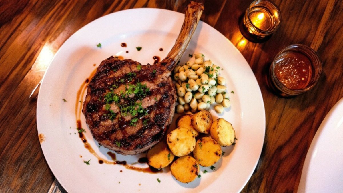 Vită tomahawk, cartofi aromați, sos meson 100g