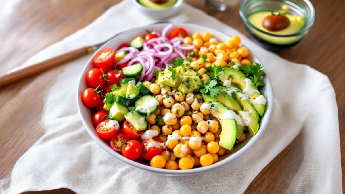 Salată de legume cu năut și avocado