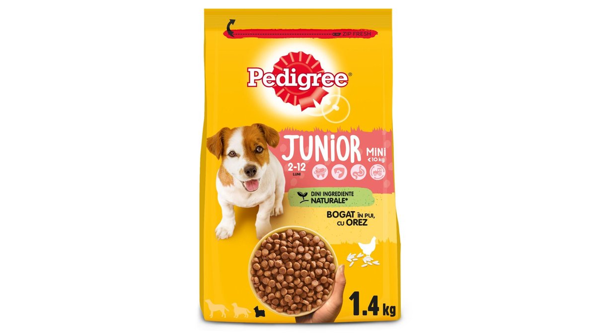 Pedigree hrana uscata cu pui si orez pentru caini juniori 1,4 kg