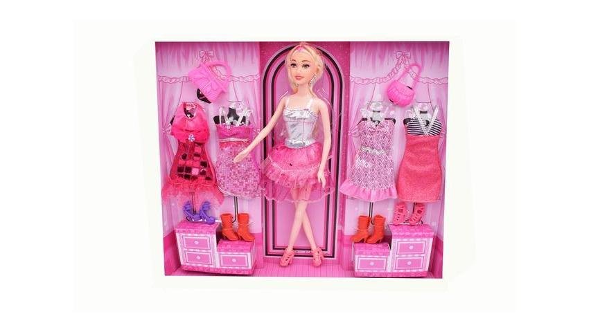 Papusa cu garderoba, plastic, 32.5 cm, Multicolor