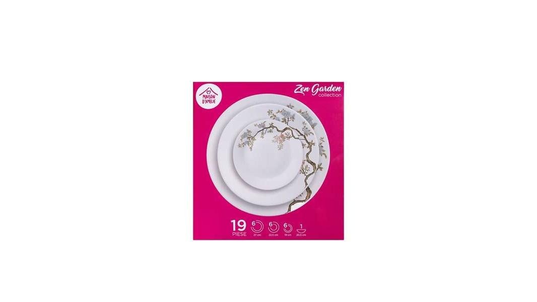 Serviciu De Masa Maison D'Amelie Zen Garden Pearl, Opal, 19 Piese, Alb Cu Decor