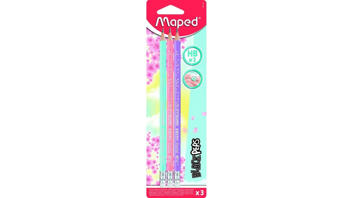 Set 3 creioane HB cu guma Black'Peps Maped Pastel, Multicolor