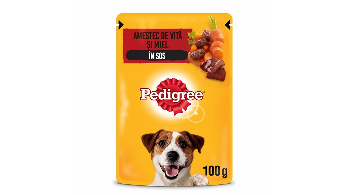 Pedigree hrana umeda pentru caini adulti, cu vita si miel in sos 100 g