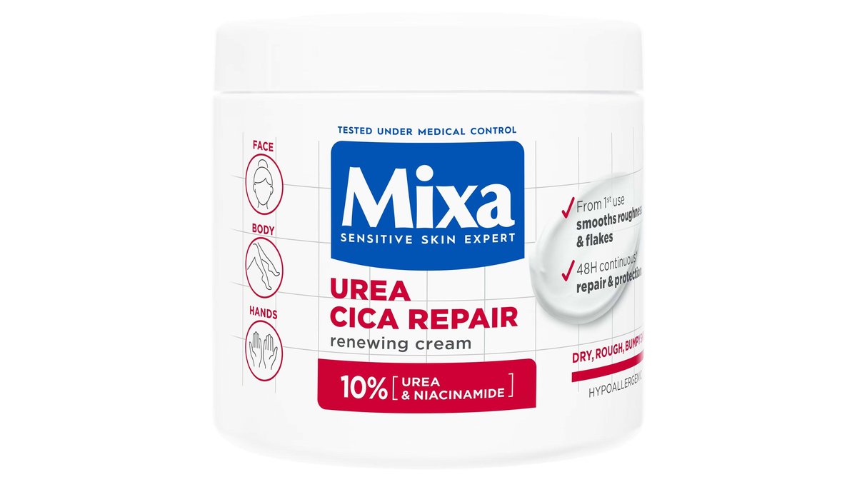 Crema reparatoare pentru fata si corp Mixa Panthenol Comfort cu 13% Glicerina, Omega 6 si 9 si Pantenol, piele cu tendinta atopica, 400 ML