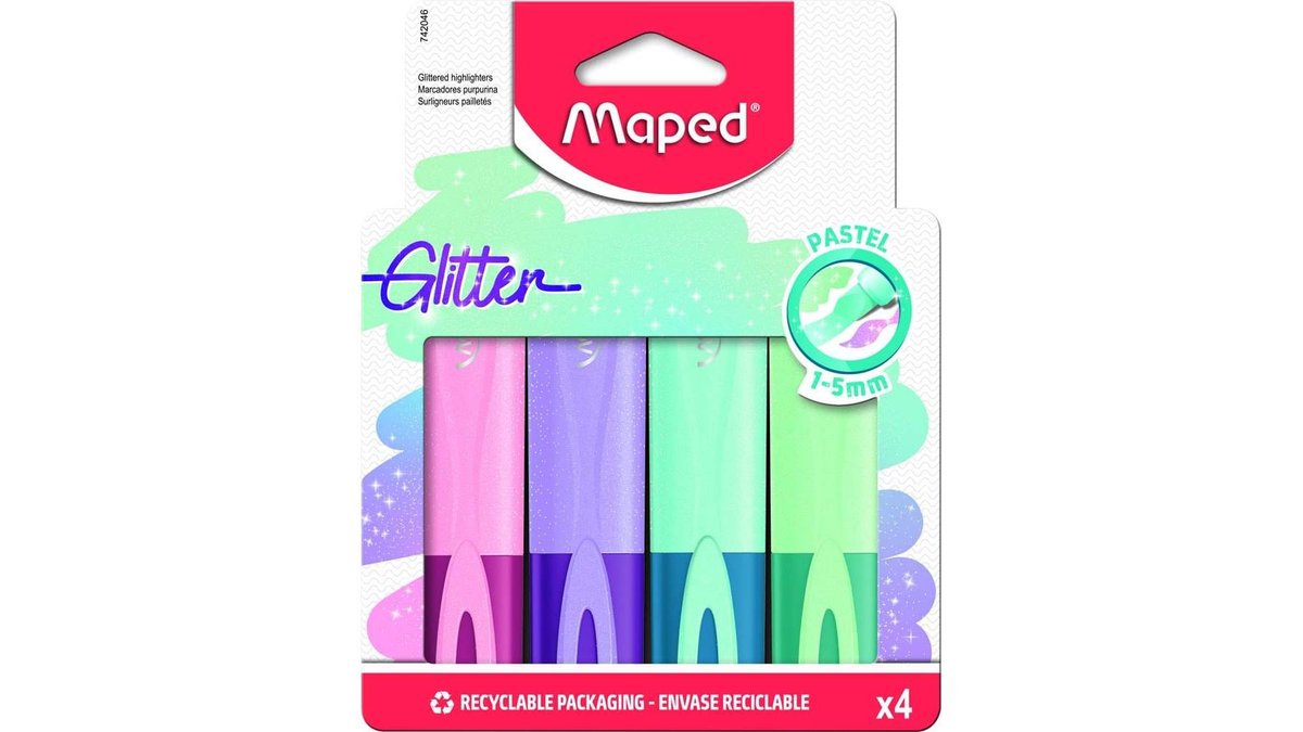 Set 4 markere evidentiatoare cu sclipici Fluo'Peps Classic Pastel Maped, Multicolor