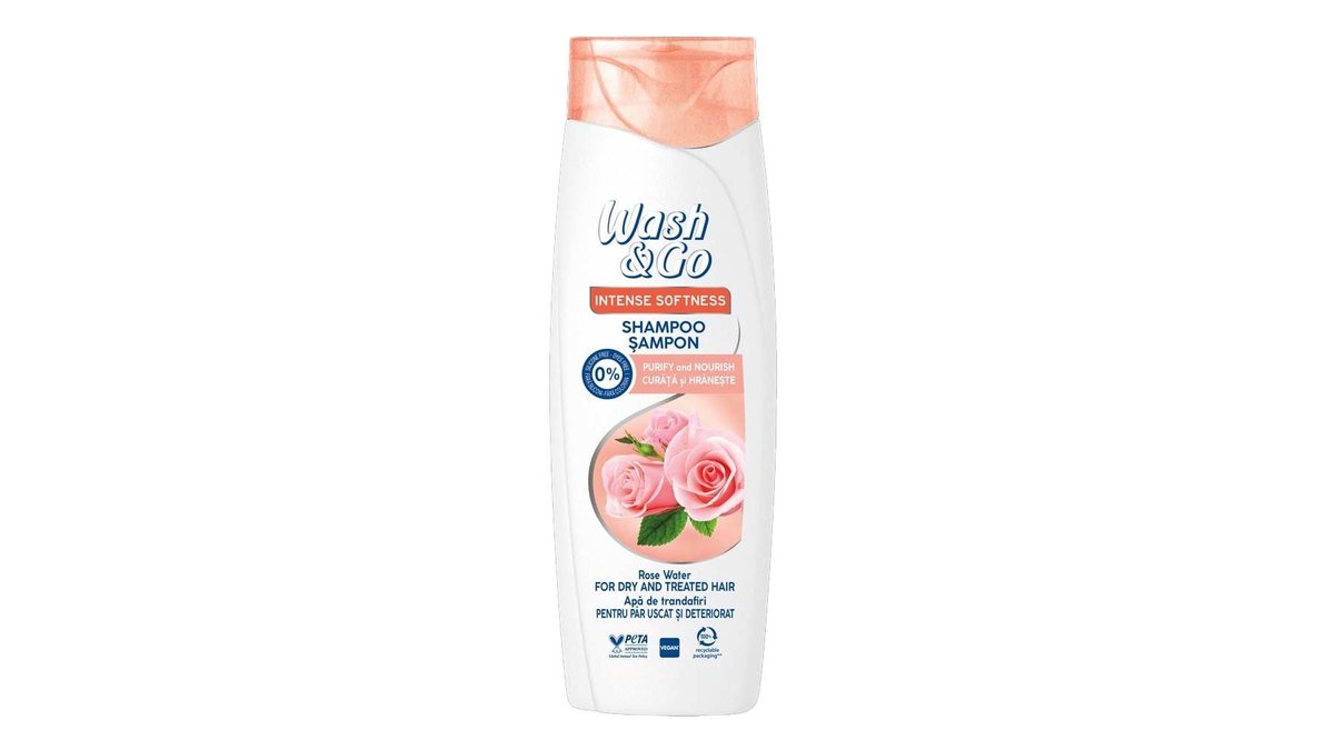 Sampon pentru par uscat si deteriorat Wash&Go Intense Softness, cu apa de trandafiri, 360 ML