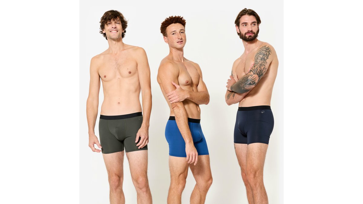 Set 3 perechi boxeri respiranți microfibră Albastru închis/Albastru/Kaki Bărbați