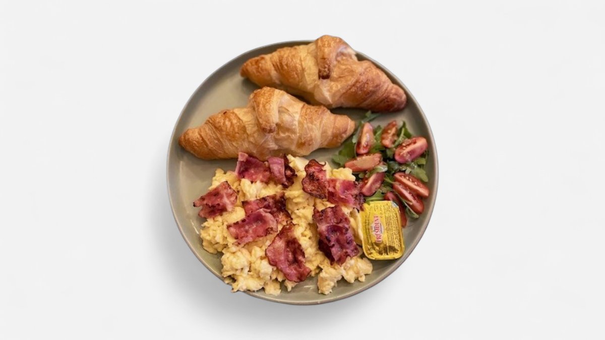 Dopio croissant cu scrambled eggs si bacon 300 g