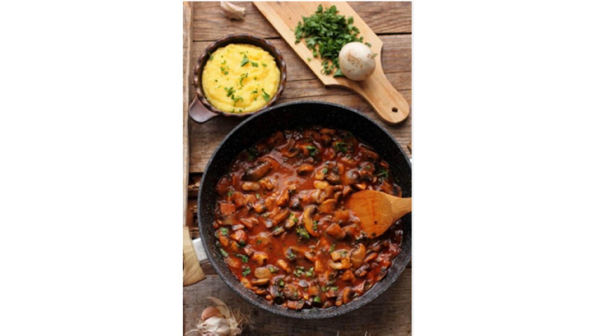 Ciuperci sotate (200g), sos vin alb (50g), mamaliga (150g) (400g)