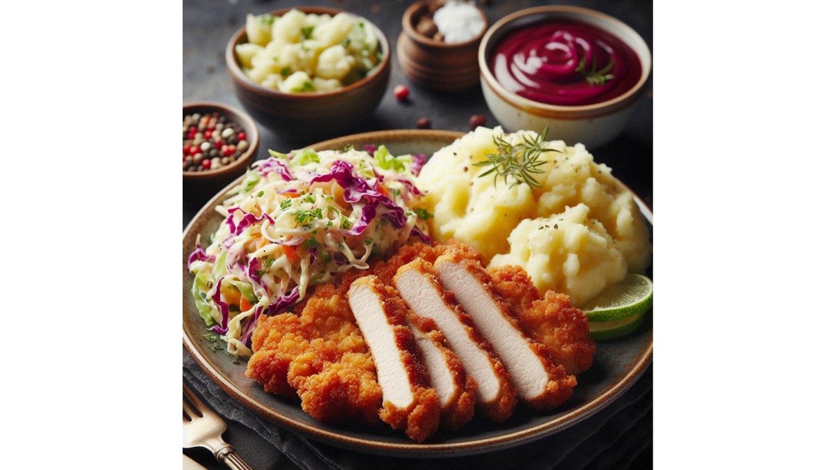 Șnițel porc cu piure de cartofi și salată de varză