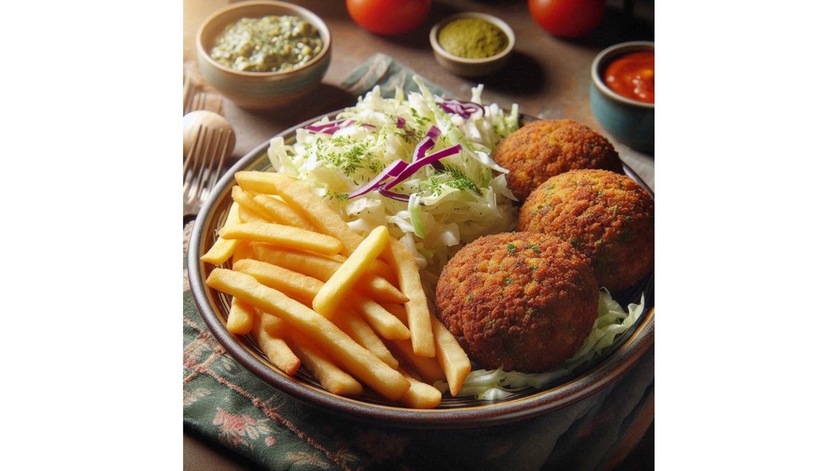Falafel, cartofi rustici, salata varza, sos Tartar - 500g