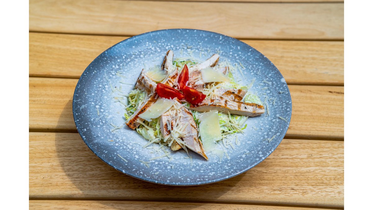 Salată iceberg, sos Caesar, piept de pui, crutoane pâine, parmesan, roșii 350g