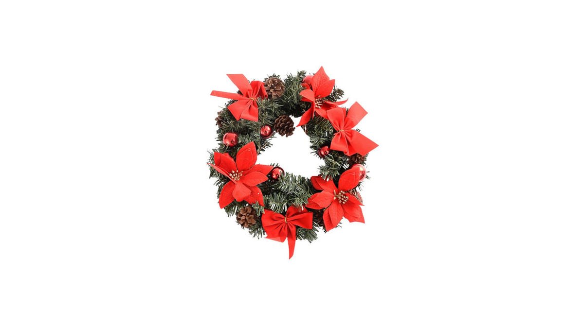 Coronita de agatat Actuel, cu flori de craciunite, conuri si globulete, 30 cm