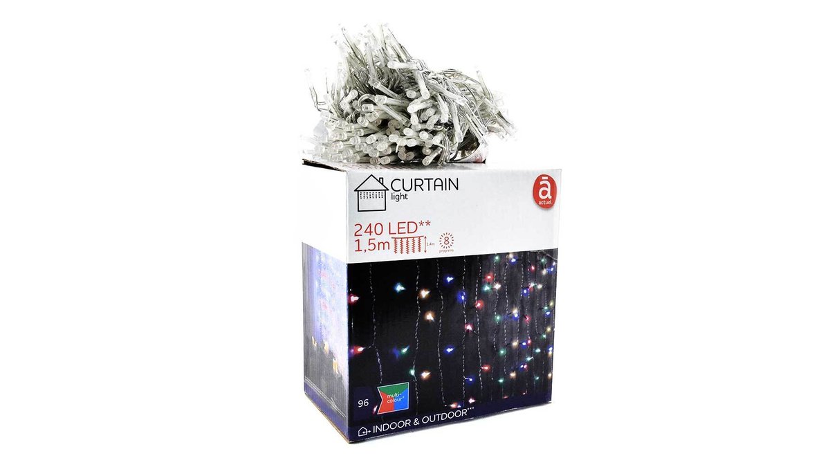 Instalatie de Craciun Actuel tip perdea, 240 LED-uri, dimensiuni 1.5 m latime x 1.4 m inaltime, 8 programe, Multicolora