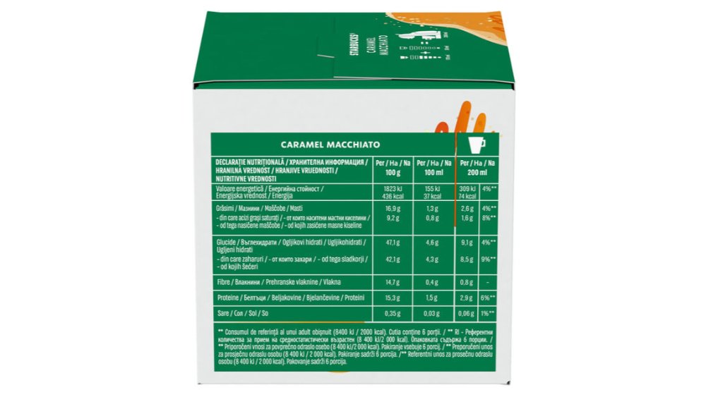 Capsule cafea Starbucks Latte Macchiato Caramel, compatibile Dolce Gusto, 6 capsule cafea x 6 lapte