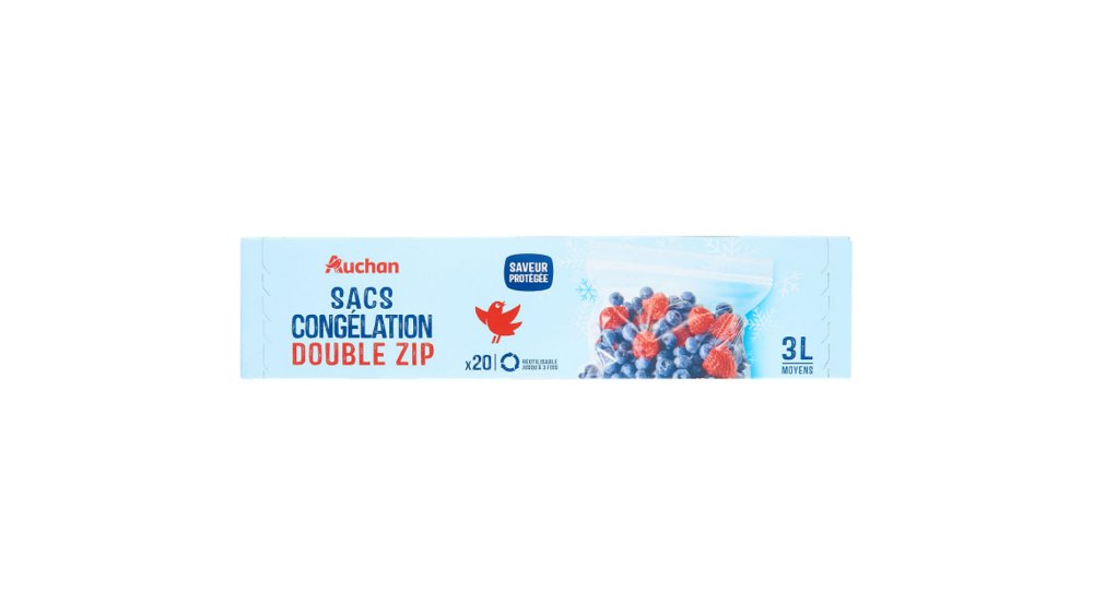 Pungi pentru congelator Auchan cu sistem de inchidere, 20 bucati 3L