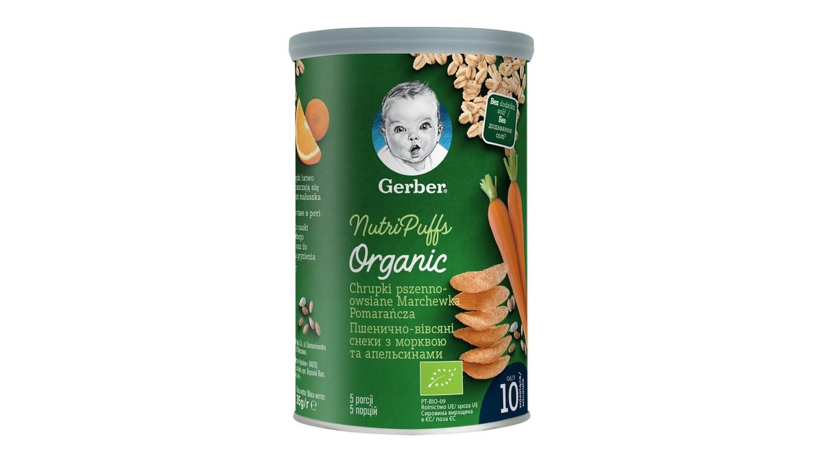Gustare cu cereale, morcovi si portocale Gerber, de la 10 luni, 35 g