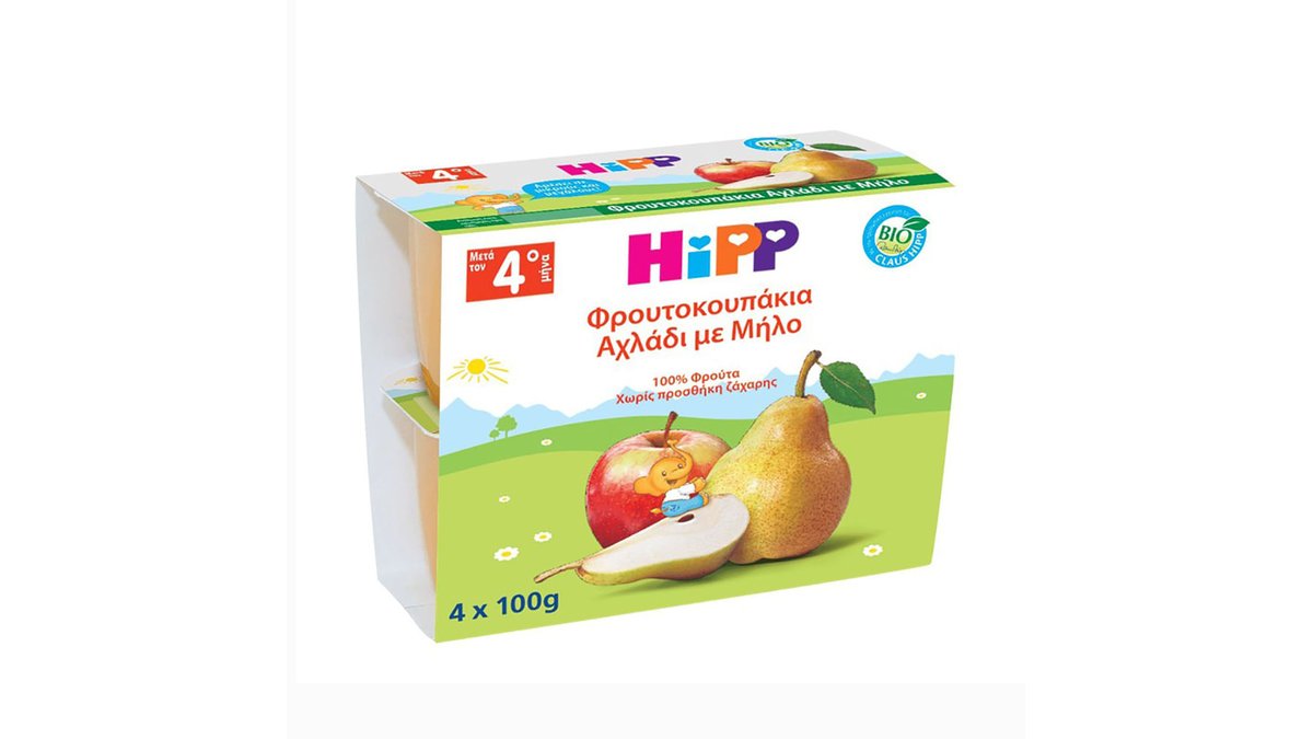 Gustare cu fructe Hipp, pere si mere, de la 4 luni, 4 x 100 g