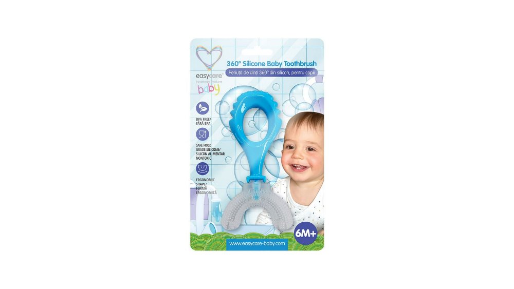 Periuta de dinti circulara U-Shape EasyCare Baby, silicon, +6 luni, albastru