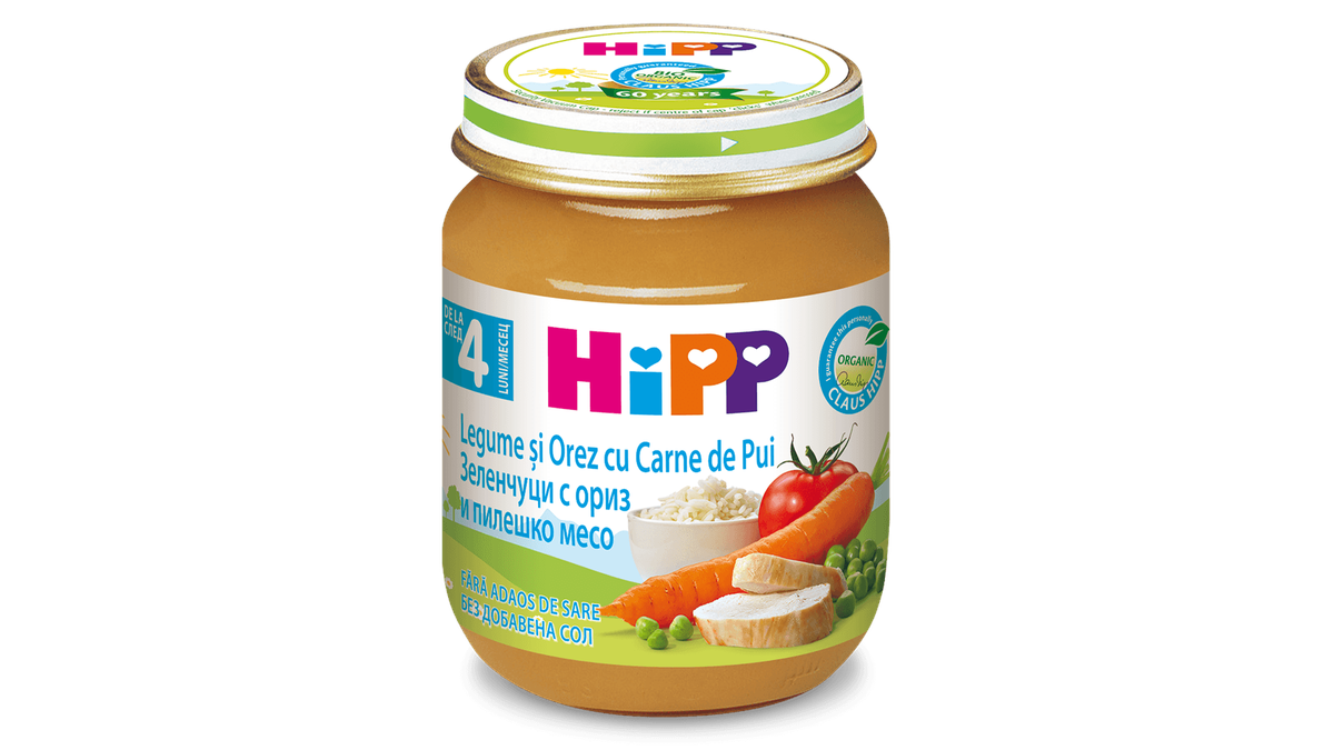 Meniu Hipp Legume si Orez cu carne de pui, de la 4 luni, 125 g