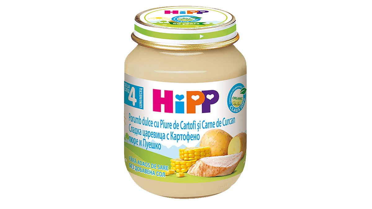Meniu Hipp Porumb dulce cu piure de cartofi si carne de curcan, de la 4 luni, 125 g