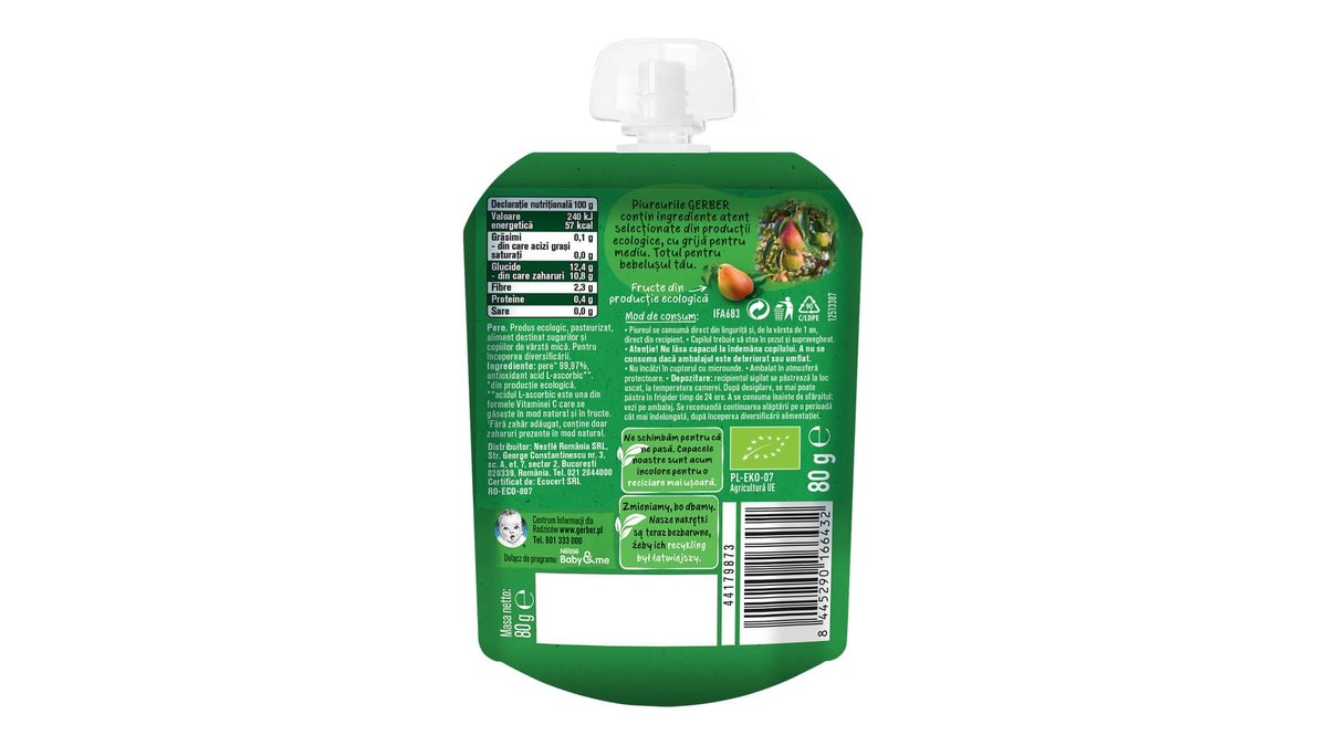 Piure cu pere Gerber Bio, de la 4 luni, 80 g