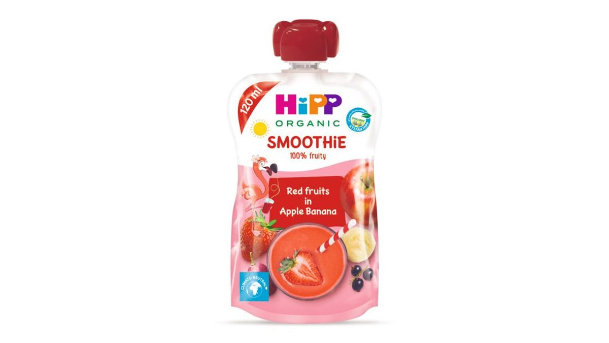 Smoothie de fructe rosii, mere si banane Hipp, de la 1 an, 120 ml