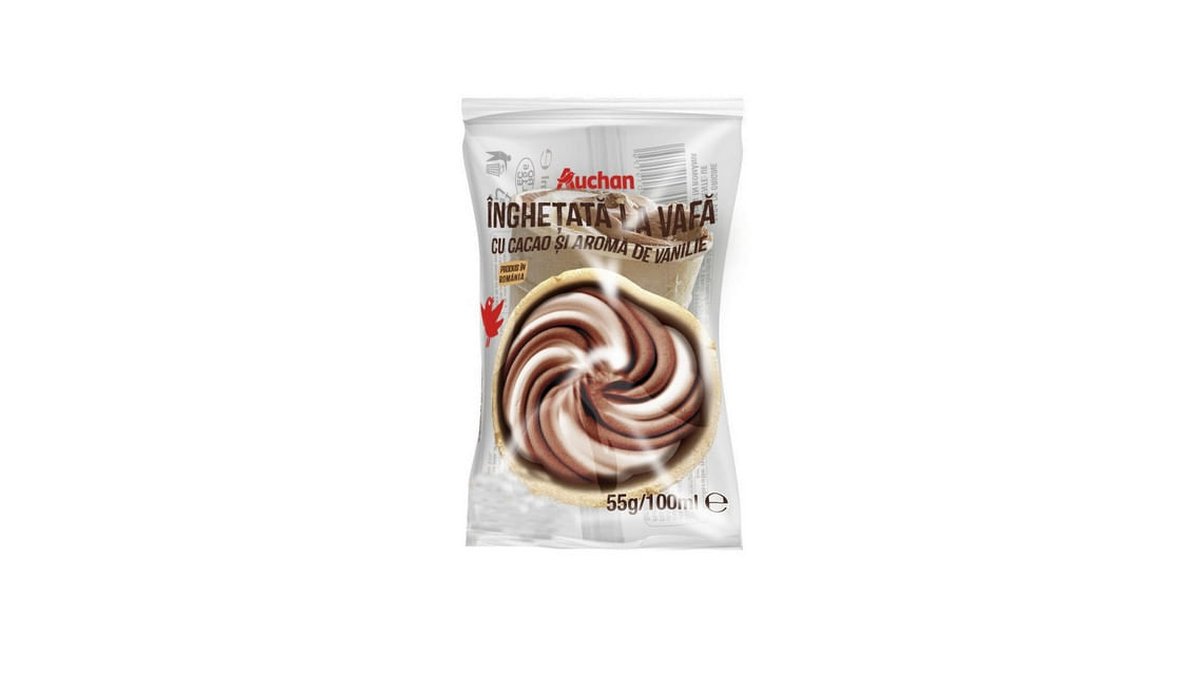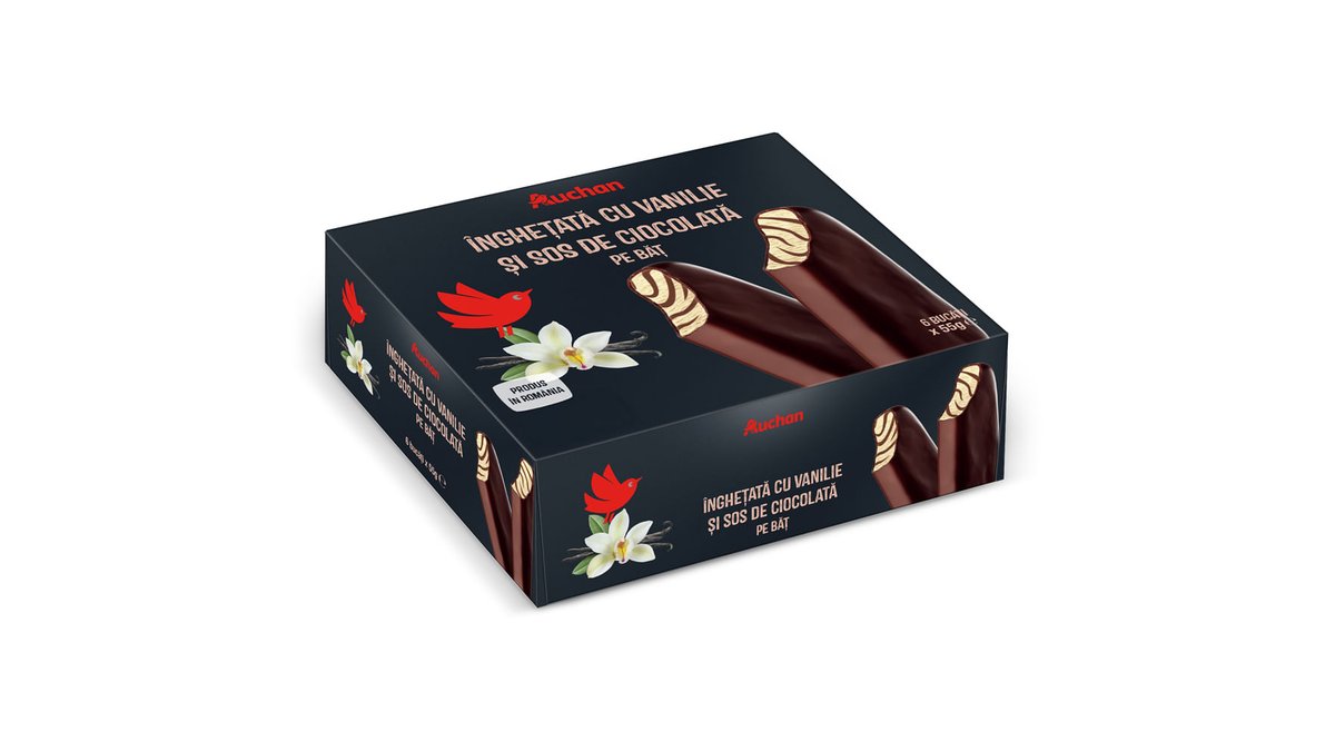 Pachet de inghetata pe bat cu vanilie, sos de ciocolata si glazura de cacao Auchan, 6 x 55 g