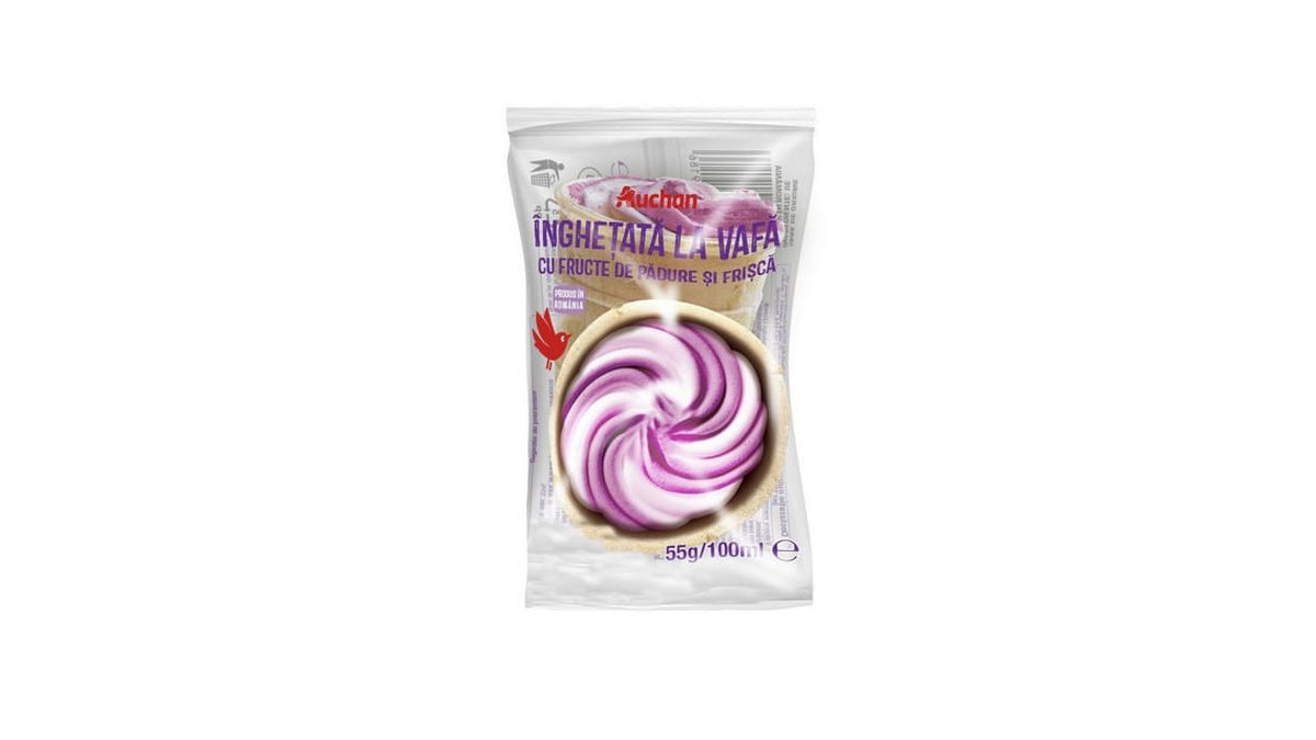 Pachet de inghetata la cornet cu capsuni, arahide si glazura de cacao Auchan, 6 x 65 g