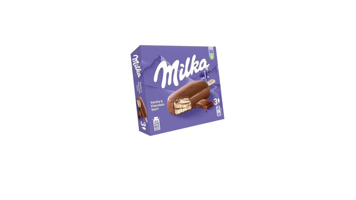 Inghetata pe bat cu vanilie si ciocolata Milka Vanilla & Chocolate Swirl, 270 ml