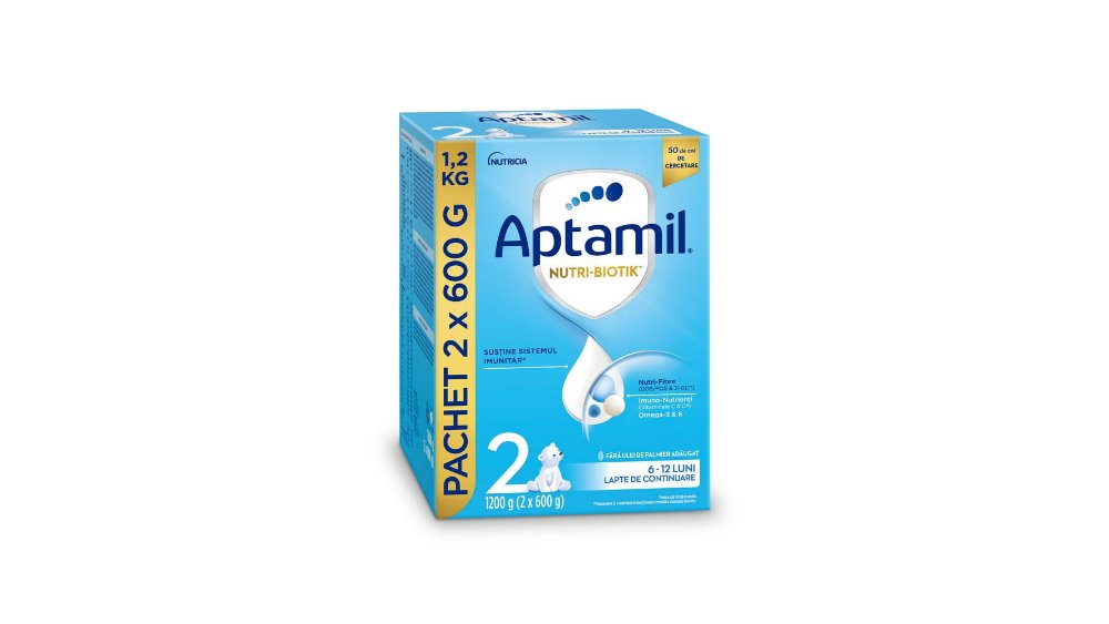 Formula de lapte Aptamil Nutri-Biotik 2, 6-12 luni, 2 x 600g