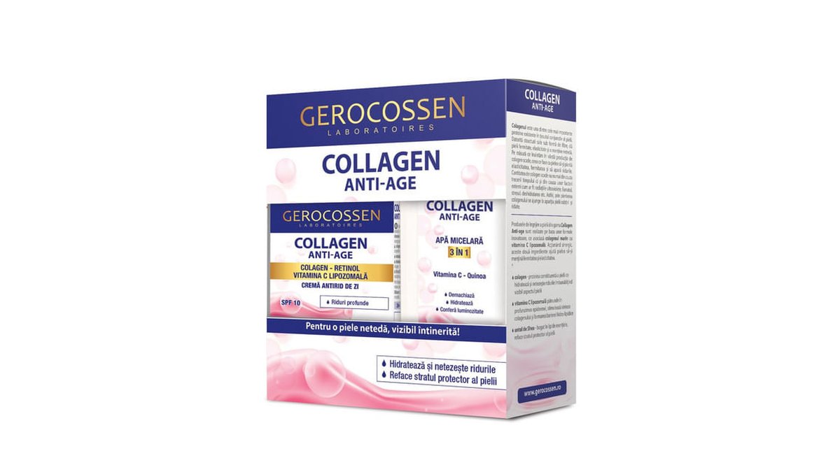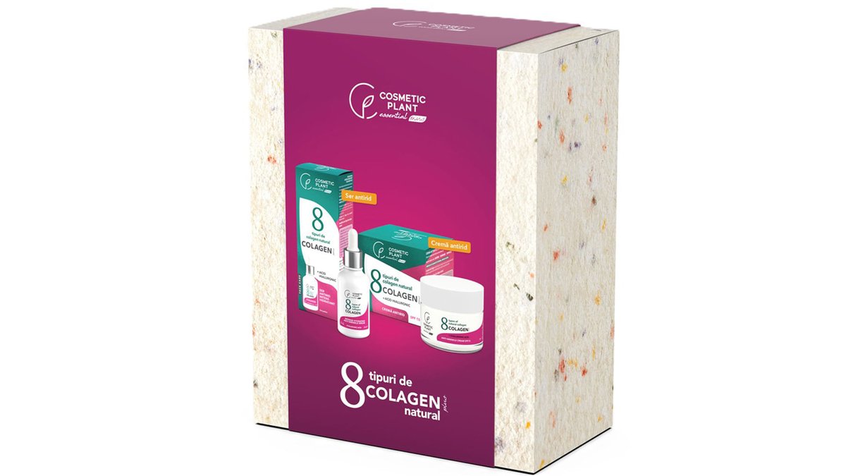 Set pentru cadou Cosmetic Plant 8 tipuri de colagen natural: Crema antirid SPF 15, 50 ml + Ser antirid, 30 ml