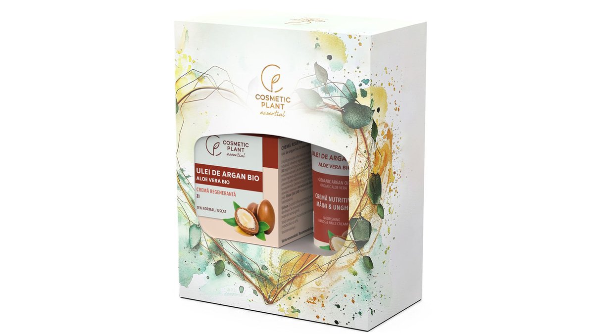 Set pentru cadou Cosmetic Plant Essential: Crema regeneranta ten, 50 ml si crema nutritiva pentru maini si unghii, 100 ml