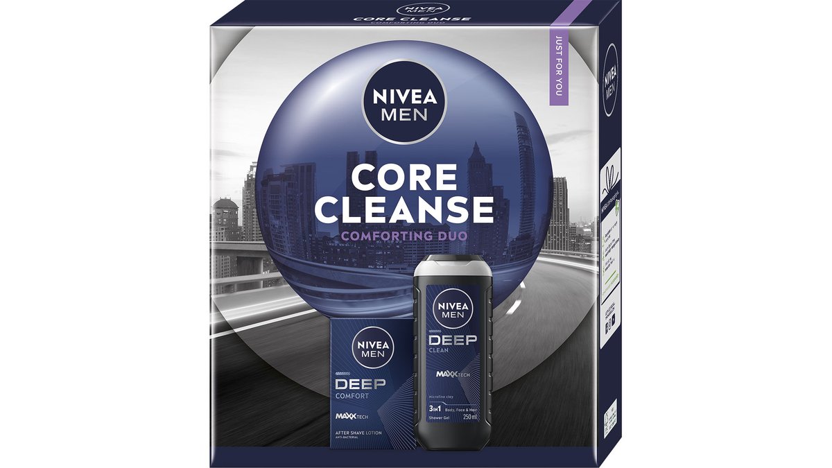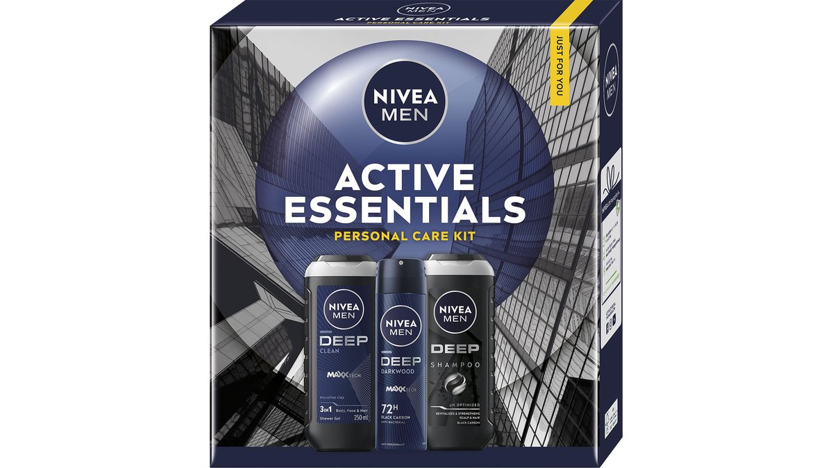 Set pentru cadou Nivea Men Deep: Gel de dus, 250 ml + Sampon, 250 ml + Deodorant spray, 150 ml