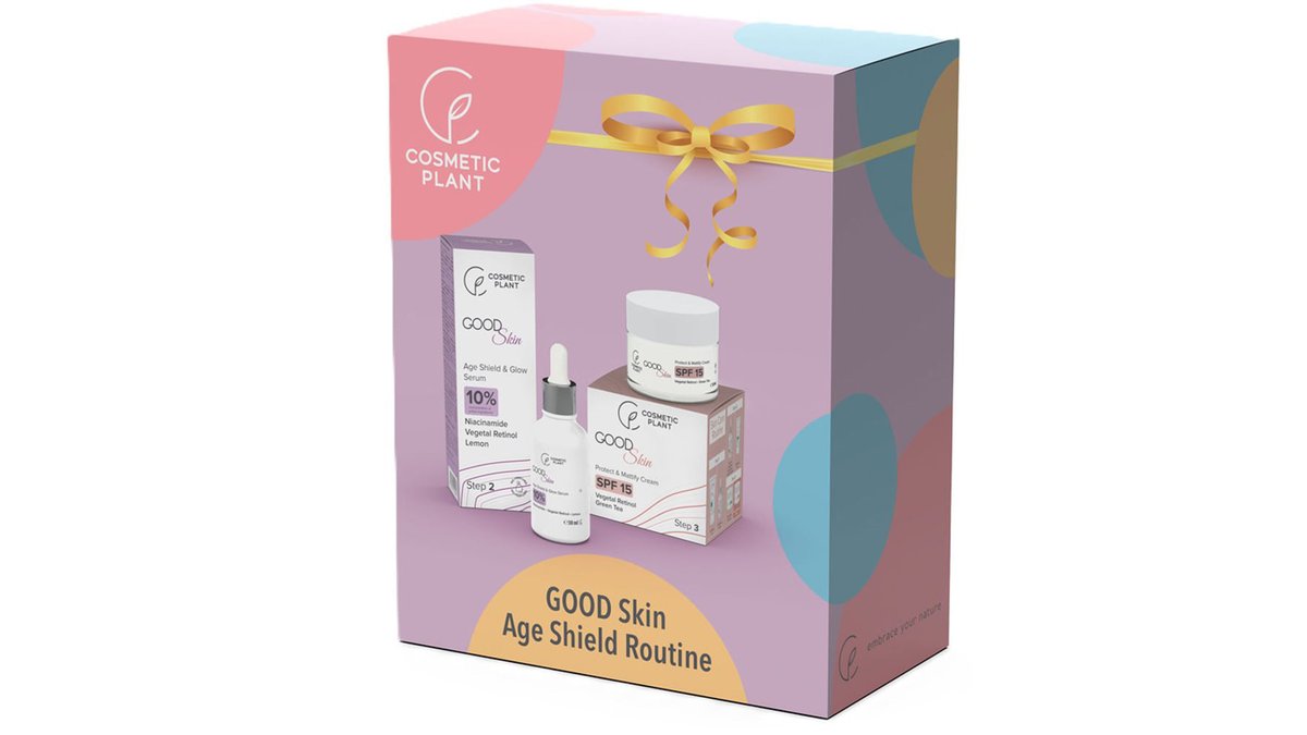 Set pentru cadou Cosmetic Plant Good Skin Age Shield Routine: Crema Protect & Mattify SPF 15, 50 ml + Serum Glow, 30 ml