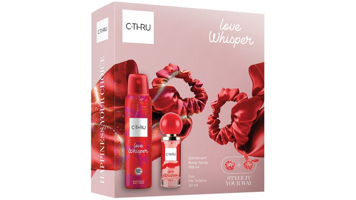 Set pentru cadou C-Thru Love Whisper: Apa de toaleta, 30 ml + Deodorant spray, 150 ml + Elastice de par