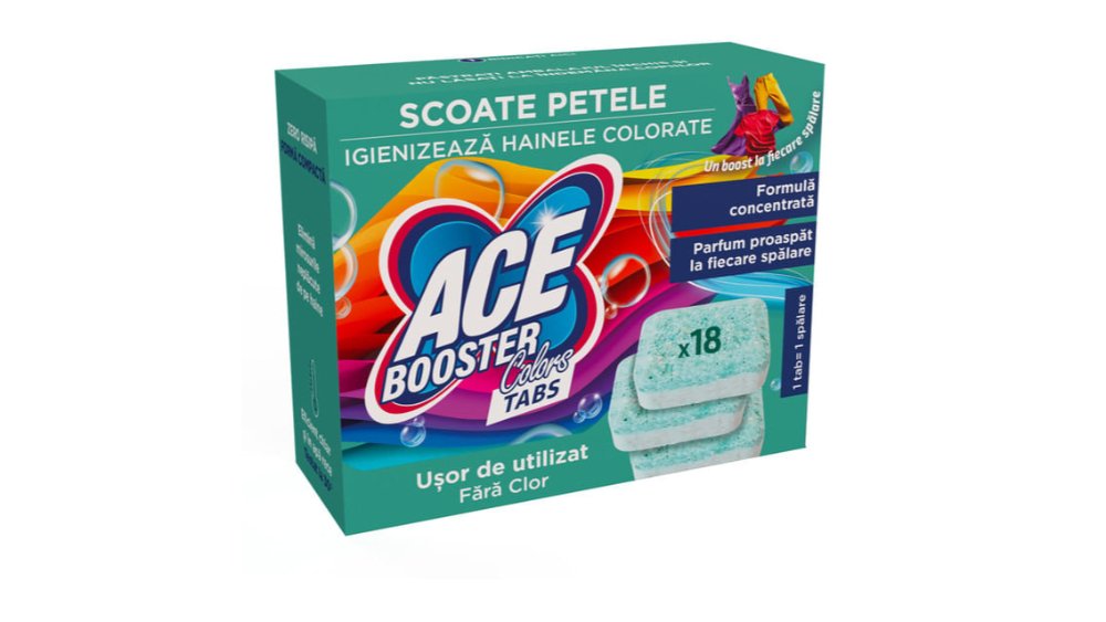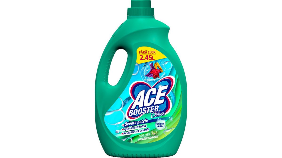 Solutie pentru indepartarea petelor Ace Booster Colors, fara clor, buchet mediteranean, 2.45 l