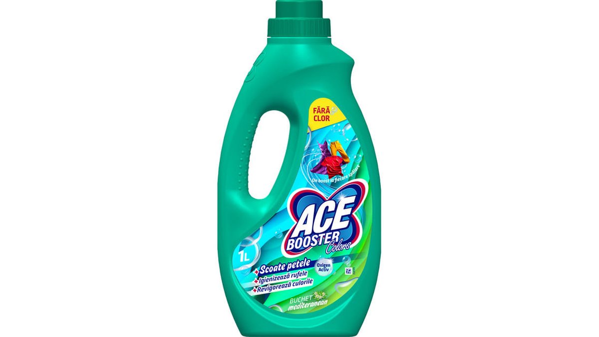 Solutie pentru indepartarea petelor Ace Booster Colors, fara clor, buchet mediteranean, 1 l