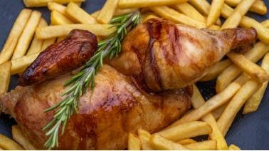Pui la ceaun cu cartofi prăjiți