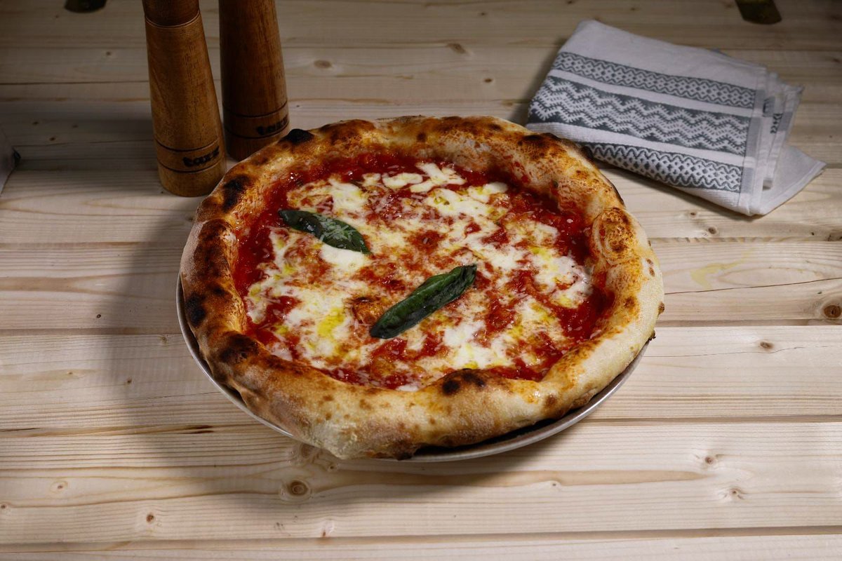 Aluat 280g, Sos de roșii 100ml, Mozzarella 120g, Parmezan 20g, Busuioc 3g, Ulei Măsline 3ml