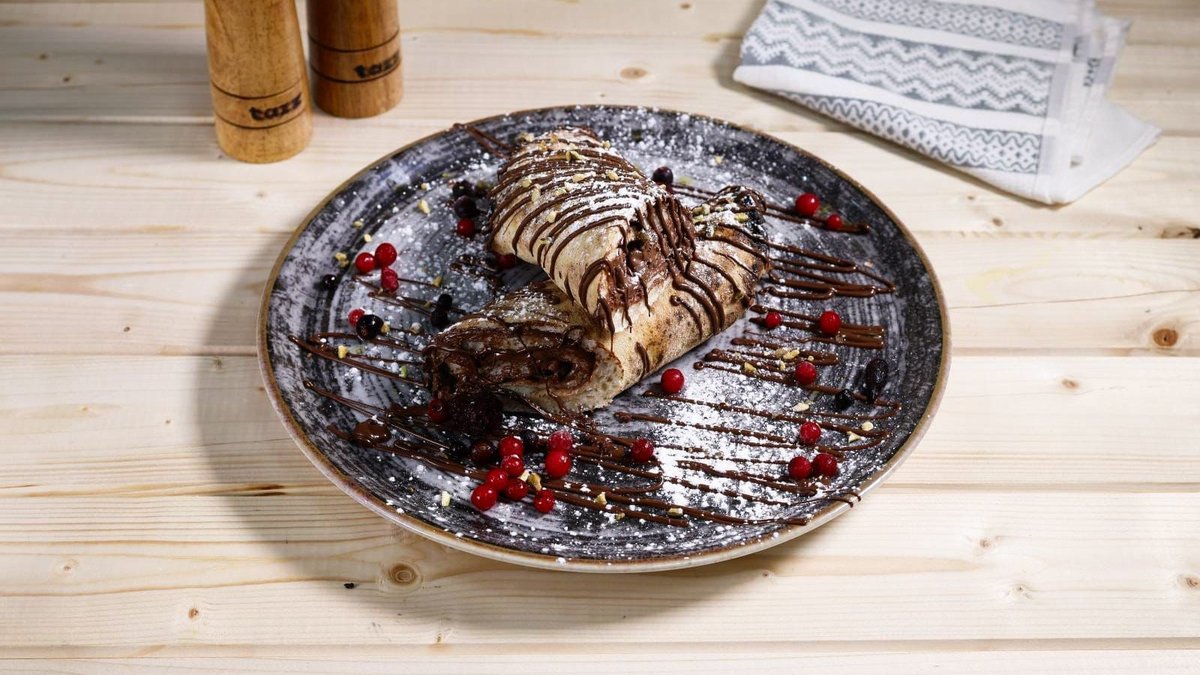 Aluat 280g, Nutela 120g, Fistic 50g, Fructe de pădure 50g, Topping Ciocolată Albă 20g, Topping Ciocolată Neagră 20g