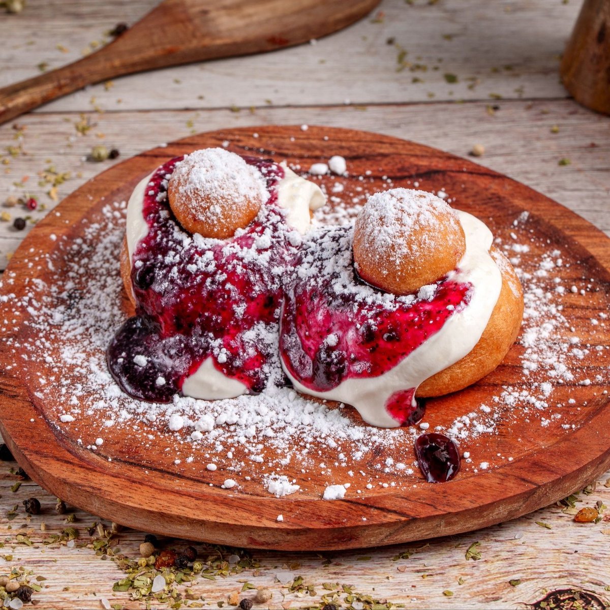 Papanași cu dulceata afine